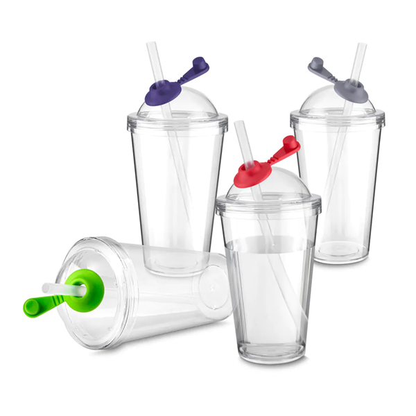 Copo plástico 600ml com tampa e canudo. OBS.: PRODUTO COM CANUDOS COLORIDO.