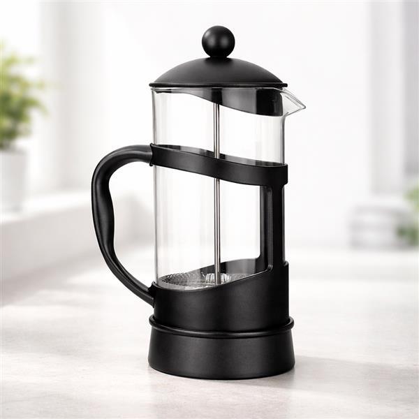 Cafeteira tipo pensa francesa em vidro com capacidade para até 1 litro, além de alça e detalhes em plástico. Possui tampa em plástico com êmbolo e tela em inox. Altura : 23 cm Largura : 14 cm Diâmetro : 9,5 cm Peso aproximado (g): 419