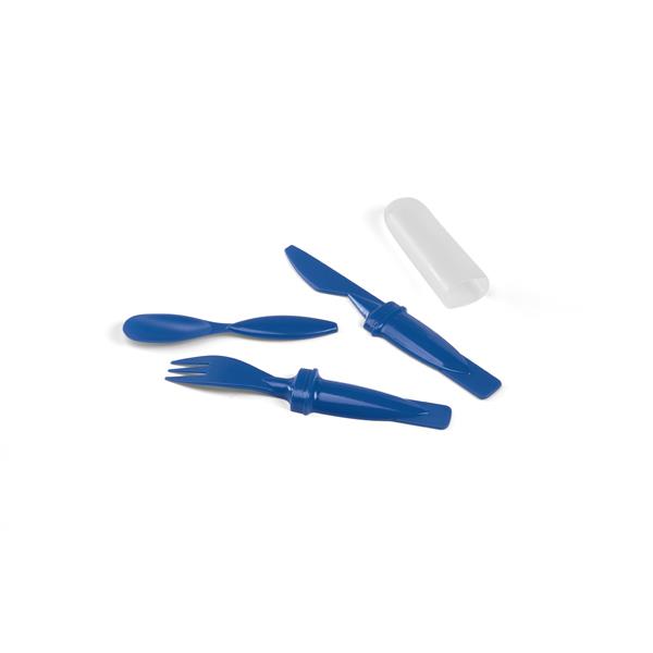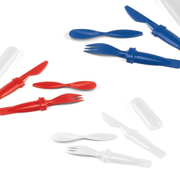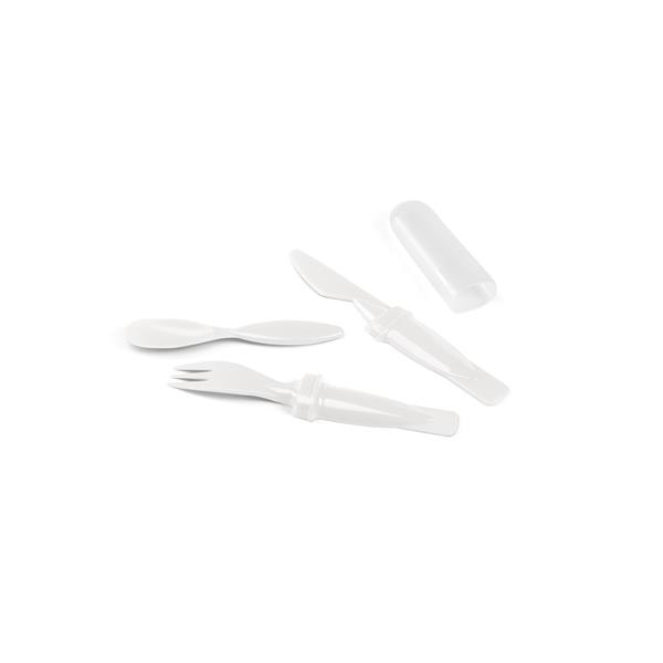 Conjunto de talheres. PP. 3 talheres: garfo, faca e colher. Food grade. 31 x 178 x 20 mm