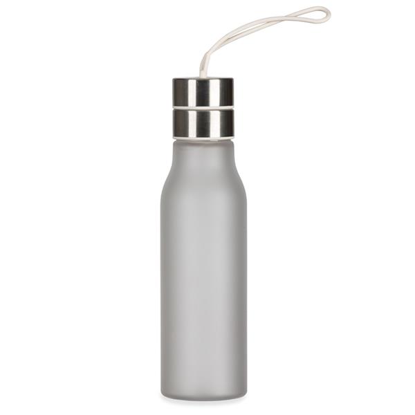 Garrafa plástica fosco de 600ml com tampa de peneira. Garrafa colorido fosco com tampa inox, possui peneira na parte interna e ambas tampas podem ser rosqueáveis. Acompanha alça elástica. Tamanho total aproximado (CxL): 24,5 cm x 6,7 cm x 21 cm Peso aproximado (g): 142
