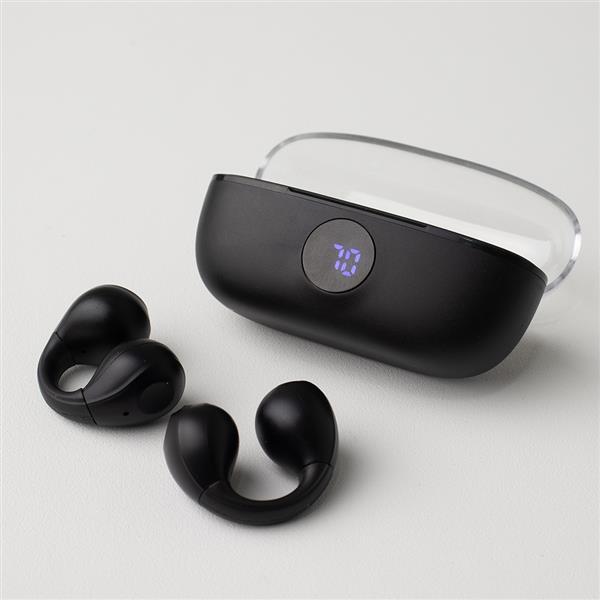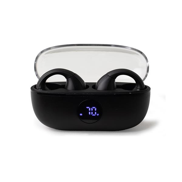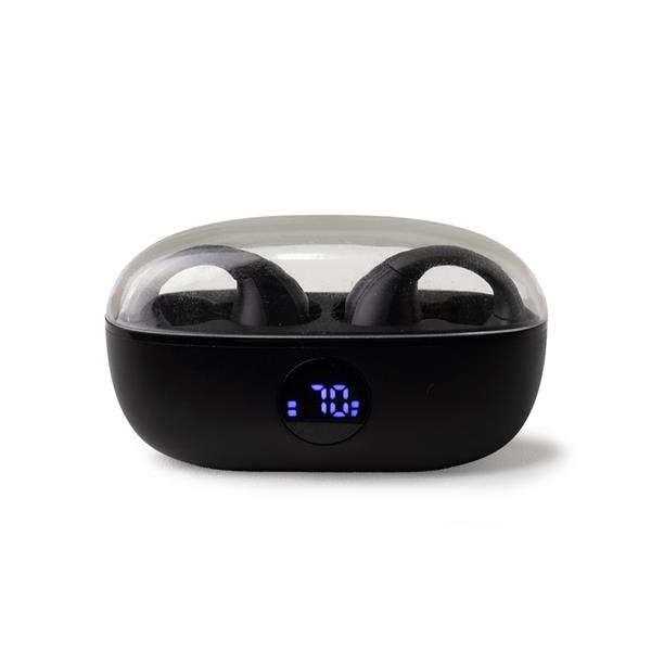 Fone de ouvido earclip bluetooth com comandos touch e case carregador. Case em plástico com display de bateria. Acompanha cabo USB. Altura : 4 cm Largura : 2,9 cm Comprimento : 7,1 cm Peso aproximado (g): 42