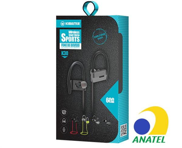 O fone esportivo K30 da Kimaster permite transmitir sem fio suas músicas favoritas.Com design ergonômico e inovador. Possui um controle de volume no fone de ouvido com botões fáceis de usar. Desfrute de horas de música com bateria de longa duração. - Conexão sem fio - Controle de volume - Baterias de lítio recarregável - Indicador de LED - Alcance de aproximadamente 10 metros - Compatível com notebooks, tablets e smartphones Especificações Gerais : - Dimensões (embalagem): 10,2 x 18 x 3,55 cm - Peso: 0,019 Kilos - Impedância: 32? +/- 15% - Sensibilidade: 90 dB +/- 3dB - Frequência de resposta: 20-20000 Hz - Autonomia da bateria: até 6 horas