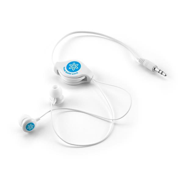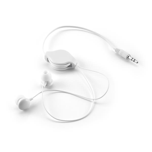 Fone de ouvido retrátil. Cabo esticado: 80 cm. Em bolsa de non-woven. Bolsa: 60 x 105 mm