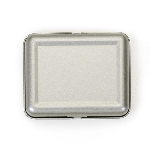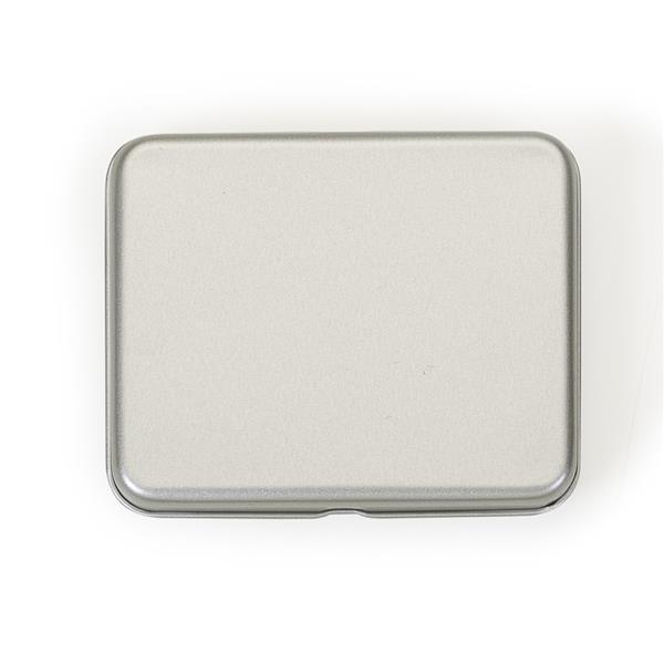 Estojo de metal com tampa para pen drive, frente lisa e verso com um quadrado em relevo. Parte interna revestida de plástico coberto de veludo. Medidas aproximadas para gravação (CxL): 9,5 cm x 7,3 cm Tamanho total aproximado (CxL): 10,5 cm x 8,5 cm Peso aproximado (g): 56