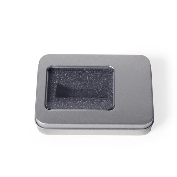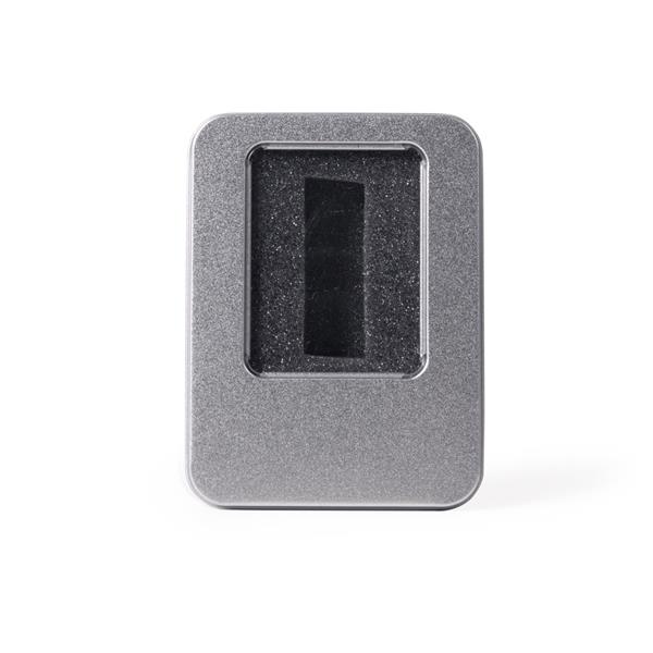 Estojo para pen drive, material de metal com tampa, proteção em espuma preta macia para não arranhar o material interno. Medidas aproximadas para gravação (CxL): 7 cm x 2,5 cm Tamanho total aproximado (CxL): 12 cm x 9 cm x 2,2 cm Peso aproximado (g): 52