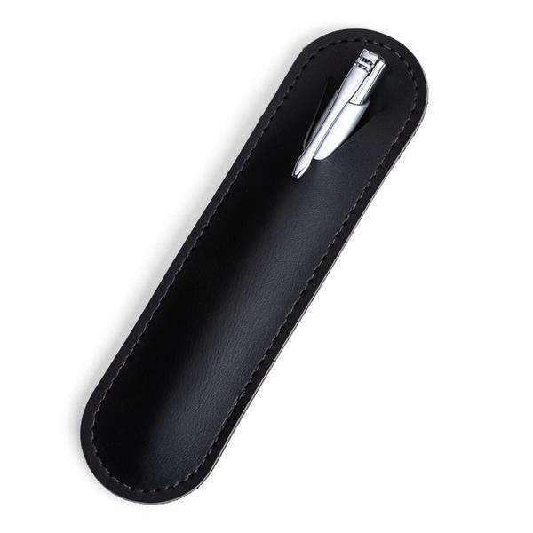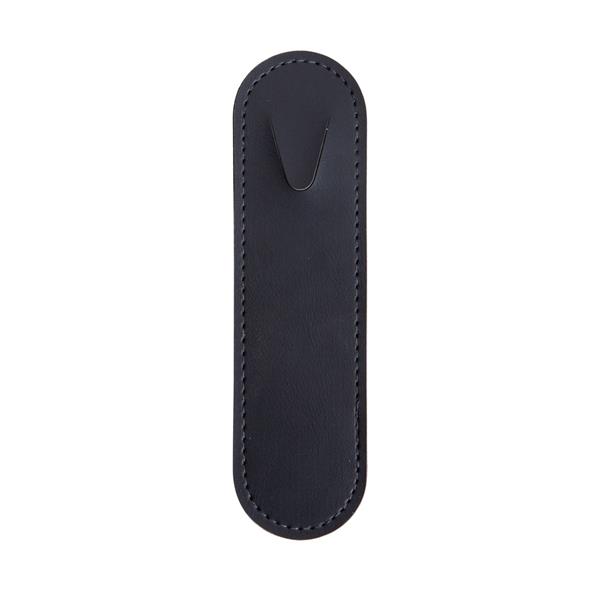 Estojo em couro sintético para uma caneta. Medidas aproximadas para gravação (CxL): 10,5 cm x 3,5 cm Tamanho total aproximado (CxL): 15,6 cm x 4,2 cm Peso aproximado (g): 10