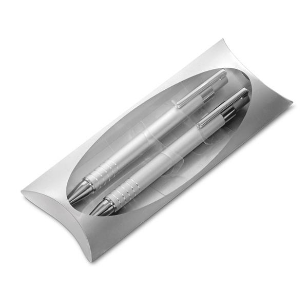 Embalagem para caneta personalizada com dois encaixes deixará seu conjunto de canetas personalizadas um brinde personalizado ainda mais bonito.