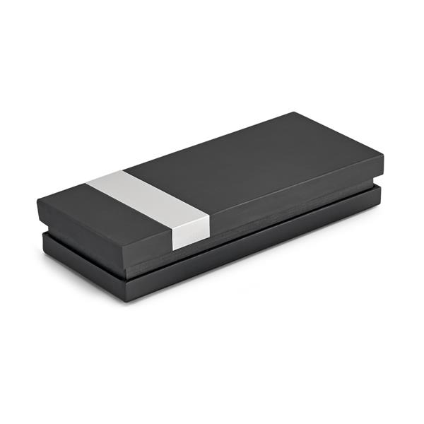 Estojo premium para 1 ou 2 esferográficas. Com almofada em veludo e placa em alumínio. 180 x 78 x 35 mm