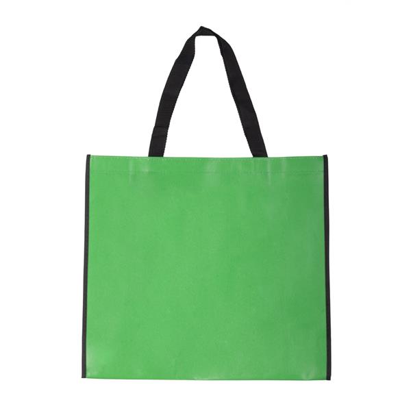 Sacola em TNT com laminação brilhante de 120g/m², possui alça de 47cm de ponta a ponto.
