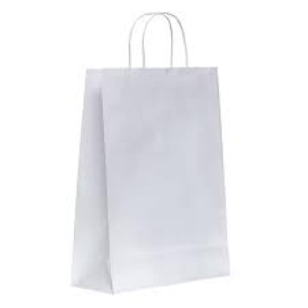 SACOLA KRAFT BRANCO MEDIDAS: 17,5CM X 8,5CM X 21,5CM