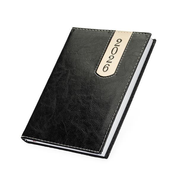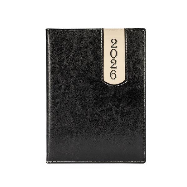Agenda diária com capa em couro sintético, detalhes de costura e o ano "2026" presente no canto superior direito. Contém marca-páginas em fita de cetim, páginas dedicadas a dados pessoais, calendários de 2025 a 2027, contatos, planejamento diário e mapas. OBS.: PEDIDOS APENAS MÚLTIPLOS DE 10 PEÇAS! Altura : 20 cm Largura : 14,7 cm Espessura : 2 cm Peso aproximado (g): 375