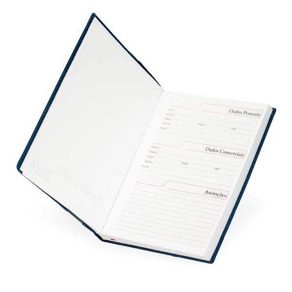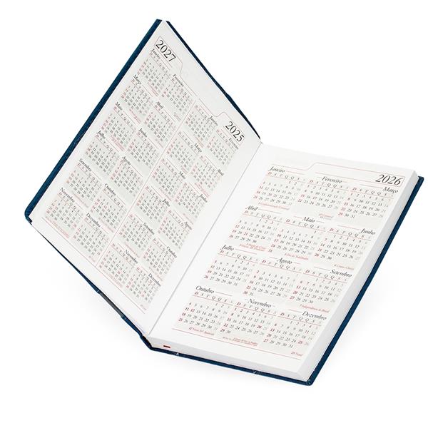 Agenda diária 2026 com capa em couro sintético, suporte para caneta e marca páginas em fita de cetim. Possui páginas dedicadas a dados pessoais, calendários de 2025 a 2027, lista de contatos, planejamento diário e mapas. OBS.: PEDIDOS APENAS MÚLTIPLOS DE 10 PEÇAS! Altura : 20 cm Largura : 14,7 cm Espessura : 2 cm Peso aproximado (g): 381
