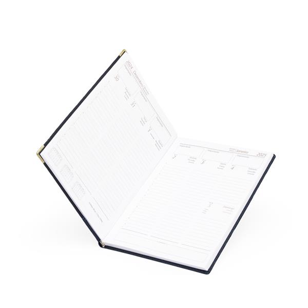 Agenda diária 2026 de couro sintético. Contém fita de cetim marca página, dados pessoais, calendário de 2025 à 2027, mapas, telefone Úteis, planejamentos, códigos do serviço DDI e DDD. Altura : 27,7 cm Largura : 20 cm Espessura : 1,4 cm Peso aproximado (g): 419