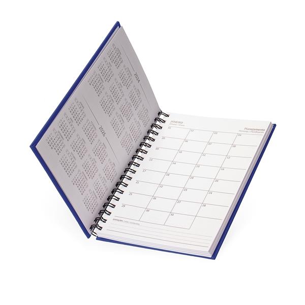 Caderno emborrachado de frente e verso lisa com espiral preto. Possui dados pessoais, calendário de 2022 à 2024, aproximadamente 100 folhas brancas pautadas com detalhe "data" na parte superior de cada folha. Tamanho total aproximado (CxL): 23 cm x 17,5 cm x 1,6 cm Peso aproximado (g): 402 Medidas aproximadas para gravação (CxL): 22,5 cm x 15,2 cm Tamanho total aproximado (CxL): 23 cm x 17,5 cm x 1,6 cm Peso aproximado (g): 402