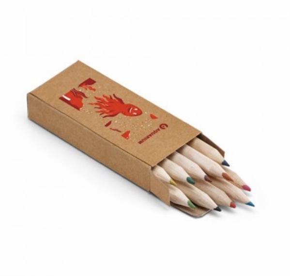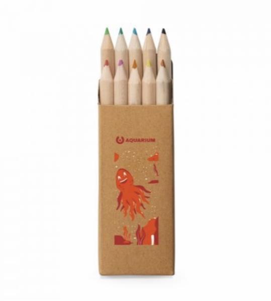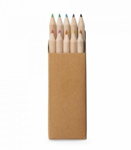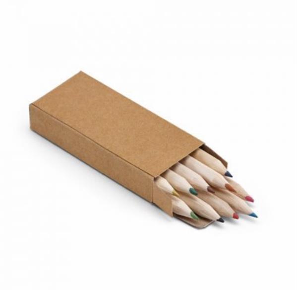 Caixa de cartão com 10 mini lápis de cor. 40 x 90 x 15 mm