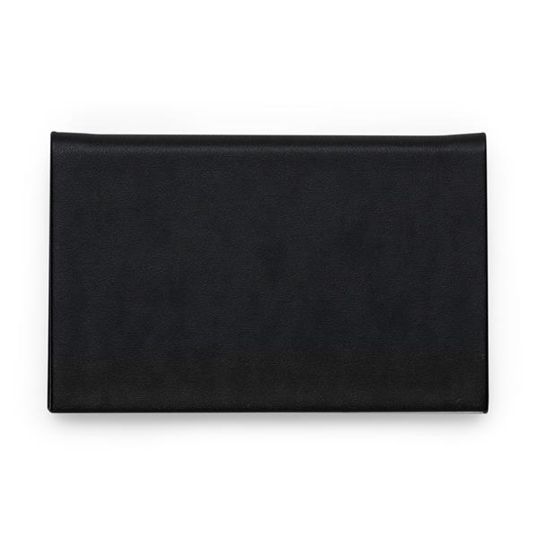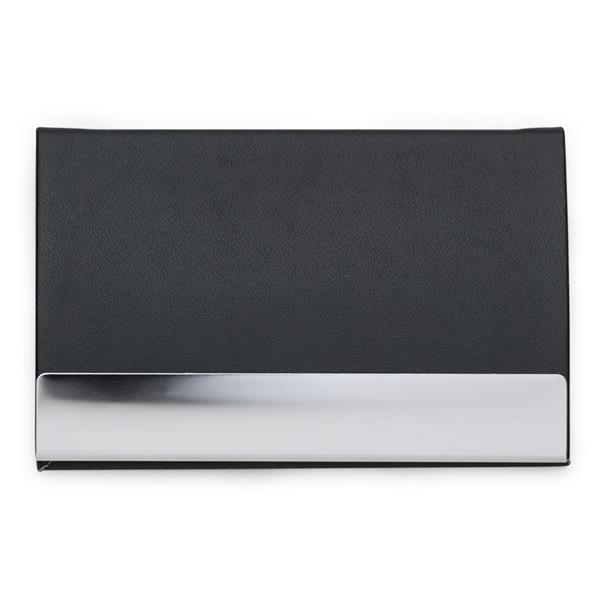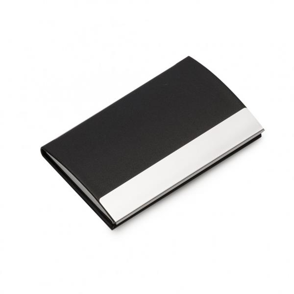 Porta cartão de couro sintético liso frente e verso, parte inferior da “tampa” em metal brilhante para personalização e laterais metálicas também. Parte interna revestida de veludo, abre/fecha por imã. Altura : 6,8 cm Largura : 10,4 cm Medidas aproximadas para gravação (CxL): 1,5 cm x 10 cm Peso aproximado (g): 80