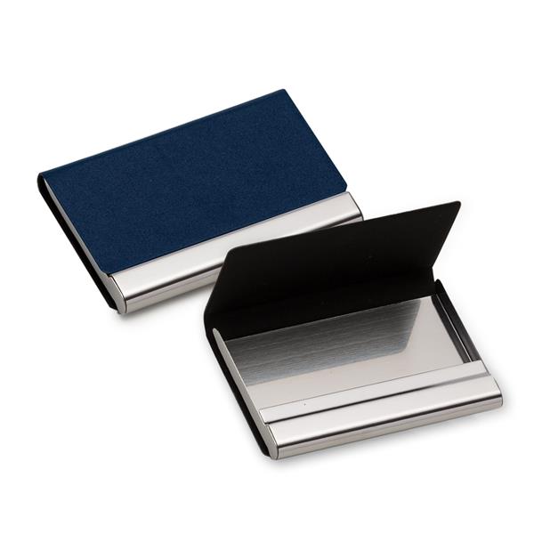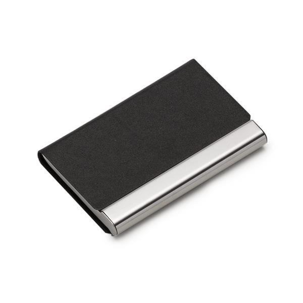 Porta cartão em couro sintético texturizado com detalhes em metal. Detalhes em metal externos espelhados e internos escovados(parte interna com veludo), fecha por imã. Altura : 6,4 cm Largura : 9,6 cm Medidas aproximadas para gravação (CxL): 0,8 cm x 9 cm Peso aproximado (g): 59