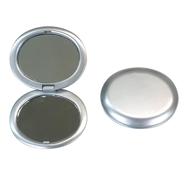 Espelho de bolsa duplo com um espelho normal e outro com aumento.
