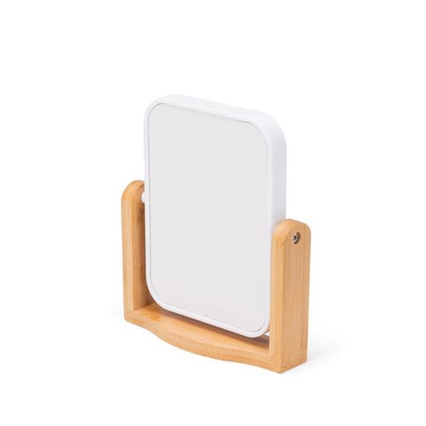 Espelho giratório retangular com base em bambu e moldura em polipropileno (PP) transparente.