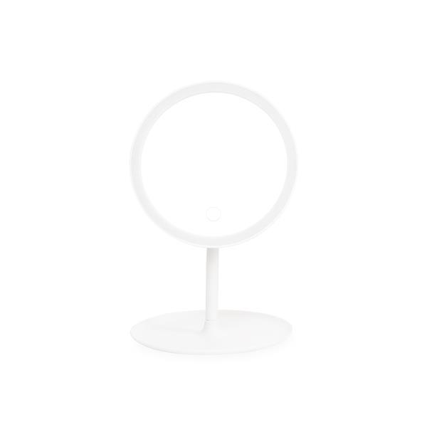 Espelho de mesa com estrutura montável em plástico, movimentação vertical de até 90 graus, iluminação em LED com três níveis de ajuste e entrada USB-C para recarga. Acompanha cabo USB-C. Altura : 26,3 cm Largura : 17,4 cm Peso aproximado (g): 277