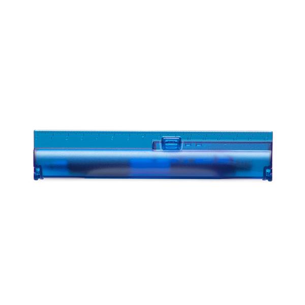 Um kit de estojo e caneta sob medida para se encaixar em qualquer rotina de trabalho ou estudos. O estojo de fácil abertura contém uma régua de 15 cm integrada à sua parte externa, ideal para tirar medidas no dia a dia. A caneta possui carga esferográfica azul de 1,0 mm e acionamento por clique, além de contar com grip emborrachado para deixar a escrita mais suave e precisa.