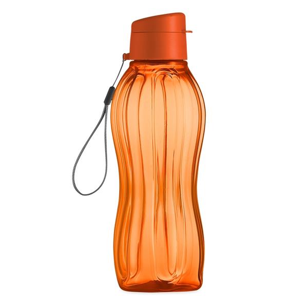 Descrição: Garrafa plástica 800ml livre de BPA. Garrafa transparente colorida com detalhes em relevo, possui tampa rosqueável com abertura de bocal. Acompanha alça de nylon, pode ser encaixado no suporte da tampa. Não é recomendado colocar o produto no freezer e/ou micro-ondas.