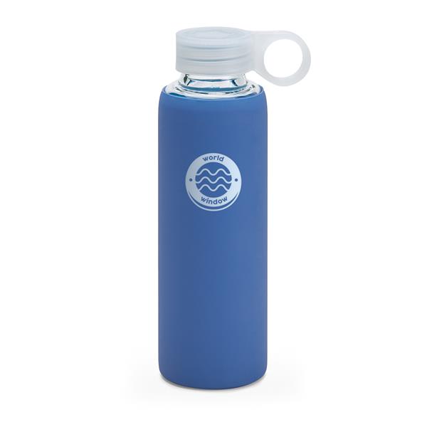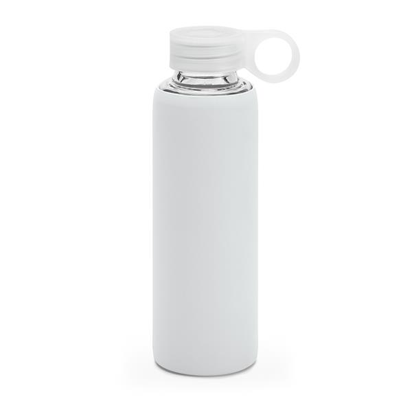 Squeeze. Vidro borossilicato. Com tampa em PP e bolsa em silicone. Capacidade: 380 ml. Food grade. Fornecida em caixa. ø58 x 191 mm