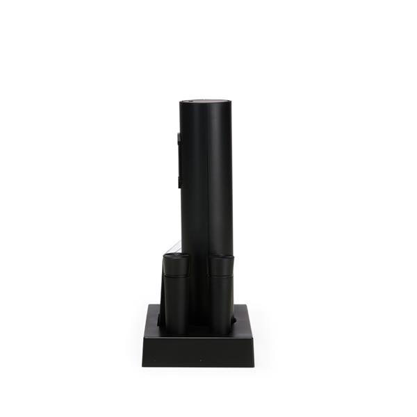 Kit vinho com seis peças, incluindo saca-rolhas recarregável com acionamento por botões, bico dosador, duas rolhas plásticas, cortador de lacre e base organizadora. Acompanha cabo USB-C. Altura : 21 cm Largura : 4,5 cm Espessura : 14,2 cm Tamanho total aproximado (CxL): Medidas dos itens do kit: Saca-rolhas recarregável (A X L X Circuf.): 21 cm x 5,5 cm x 14,2 cm Bico dosador (C X L): 9,7 cm x 3,1 cm Rolha (C X L): 7,6 cm x 2,4 cm Cortador de lacre (C X L): 7,8 cm x Peso aproximado (g): 275