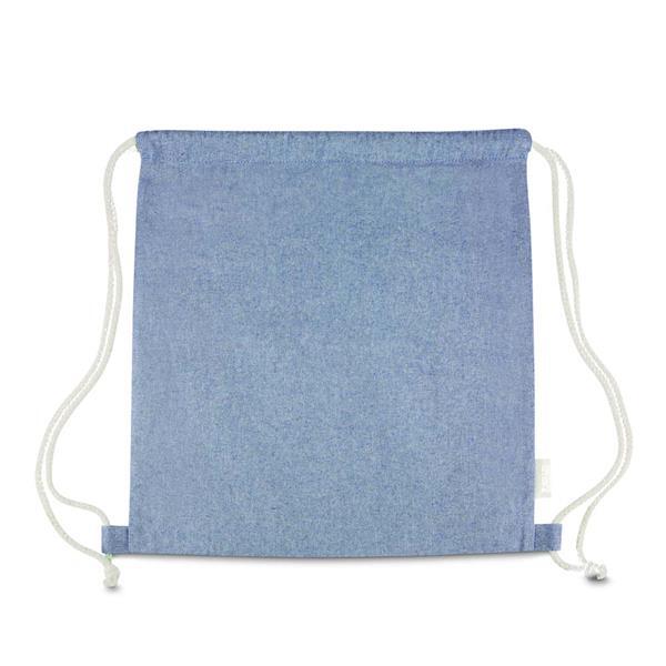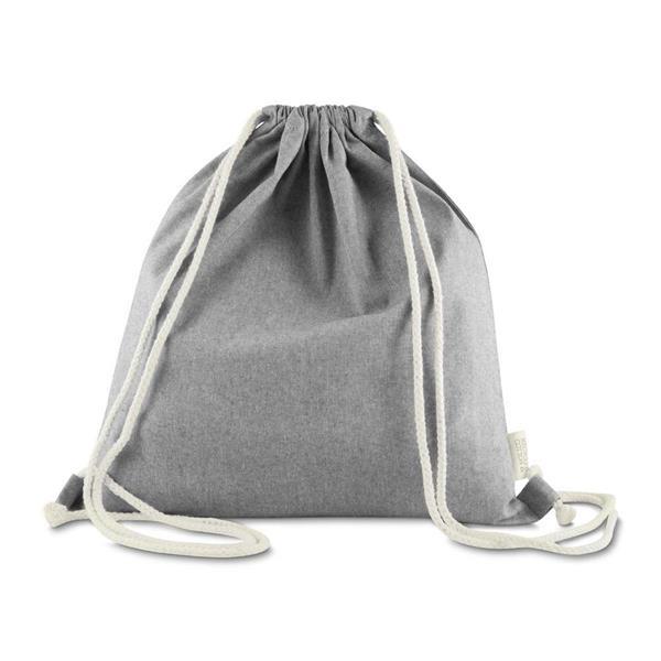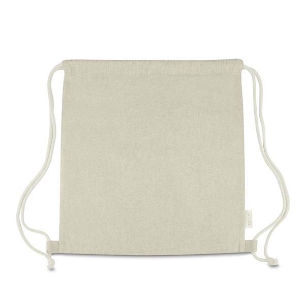 Sacola/mochila confeccionada em algodão mescla reciclado, gramatura 140g/m², com alças em algodão cru.