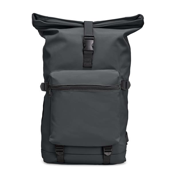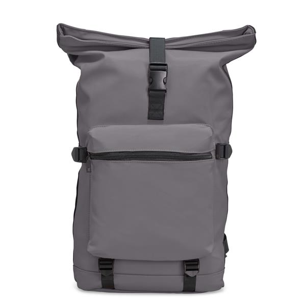 Mochila de couro sintético de 41 litros resistente à água. Possui dois compartimentos, sendo o principal com bolso para notebook de 15,6 polegadas. Possui fechamento por zíper e cinto com velcro, fivelas nas laterais para maior ajuste e engate para mala de viagem.