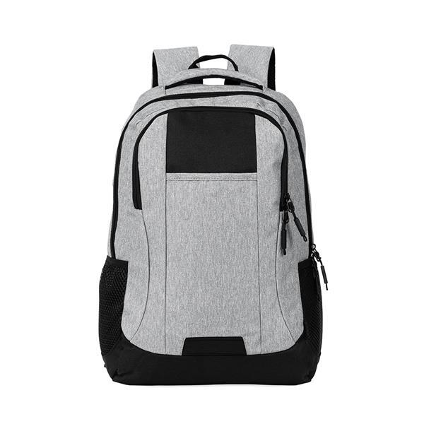 Mochila impermeável em Oxford com revestimento em PU, capacidade máxima de 23 litros e fechamento em zíper com puxadores em nylon e plástico. Possui compartimento principal com divisória para notebooks de até 17,3 polegadas. Conta com compartimento frontal e dois bolsos laterais em malha com elástico, alça para encaixe em malas de viagem e revestimento em espuma respirável nas costas, nas alças de ombro e na alça superior de mão.