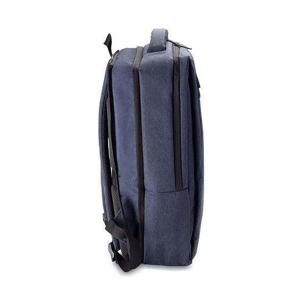 Mochila para notebook de até 15,6” com expansor, confeccionada em tecido externo de poliéster 600D e tecido interno de poliéster 210D. Possui conector USB na lateral, compartimento frontal com zíper e compartimento principal com divisórias para pequenos objetos, chaves, tablet e notebook de até 15,6”. Conta ainda com engate para mala de viagem, além de alças de mão e de ombro acolchoadas.