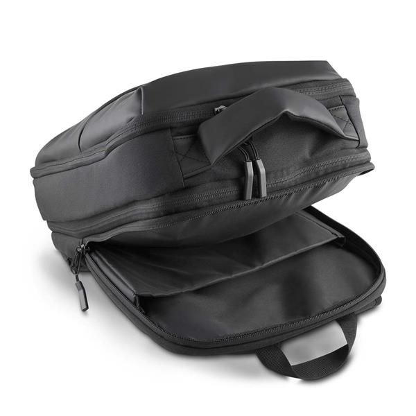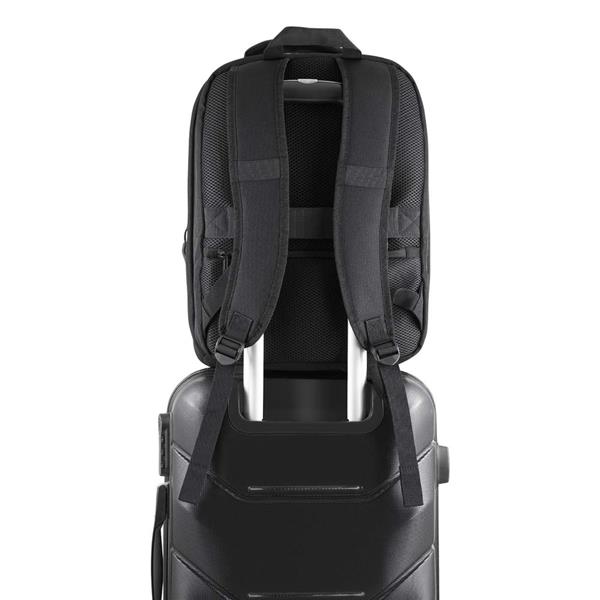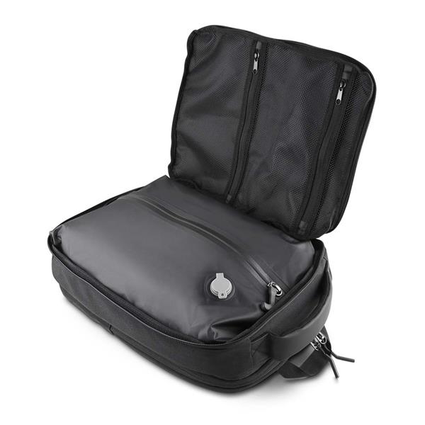 Mochila premium em poliéster 600D com detalhe em PU e interior em poliéster 210D. Conta com compartimento interno a vácuo, acompanha bomba para desinflar, expansor com zíper, compartimento frontal com zíper, compartimento para notebook de até 15,6”, compartimento com zíper nas costas, engate para mala de viagem e alças de mão e ombro acolchoadas. Volume: 26L (Com Expansor) Volume: 18,5L (Sem Expansor) *A Bomba para desinflar não acompanha pilhas (6 pilhas AA)