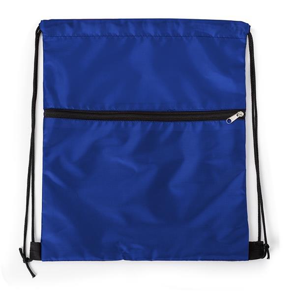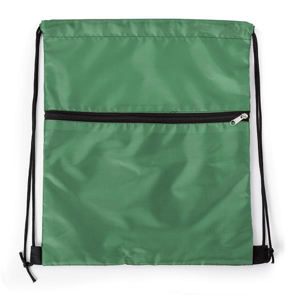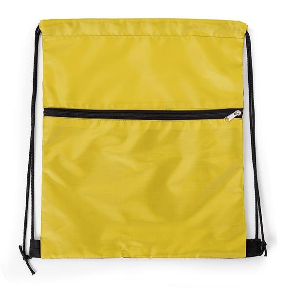 Mochila saco em nylon com duas alças para as costas, fechamento superior e compartimento frontal com zíper. Medidas aproximadas para gravação (CxL): 23,5 cm x 33 cm Tamanho total aproximado (CxL): 41,5 cm x 34 cm Peso aproximado (g): 57