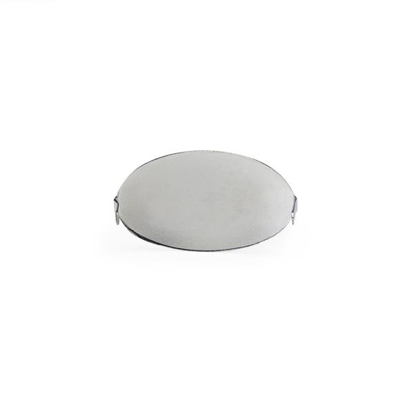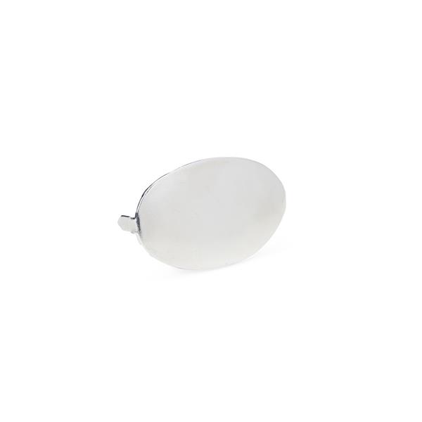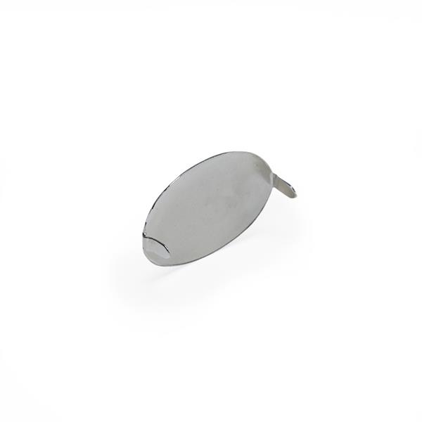 Plaquinha metálica oval para personalização. Possui hastes com ponta na parte traseira. Altura : 2 cmcm Largura : 3,4 cmcm Medidas aproximadas para gravação (CxL): 1,5 cm X 2,5 cm Peso aproximado (g): 1