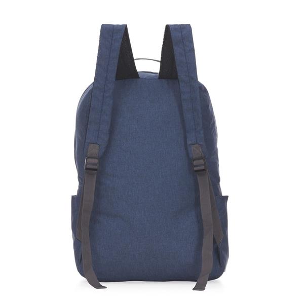 Mochila dobrável confeccionada em Poliéster. Compacta e com abertura prática, possui compartimento principal, bolsos laterais e bolso frontal – compartimento responsável por acomodar a mochila. Para armazenar a mochila no compartimento basta virar o bolso frontal do avesso e dobrar o tecido para melhor acomodação do material. A mochila dispõe de alças ajustáveis para as costas com revestimento espumado. Altura : 45 cm Largura : 27 cm Comprimento : 23 cm Medidas aproximadas para gravação (CxL): 16,5 cm x 8,7 cm Peso aproximado (g): 229