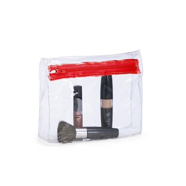 Nécessaire confeccionada em PVC transparente com fechamento em zíper.