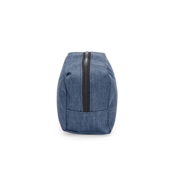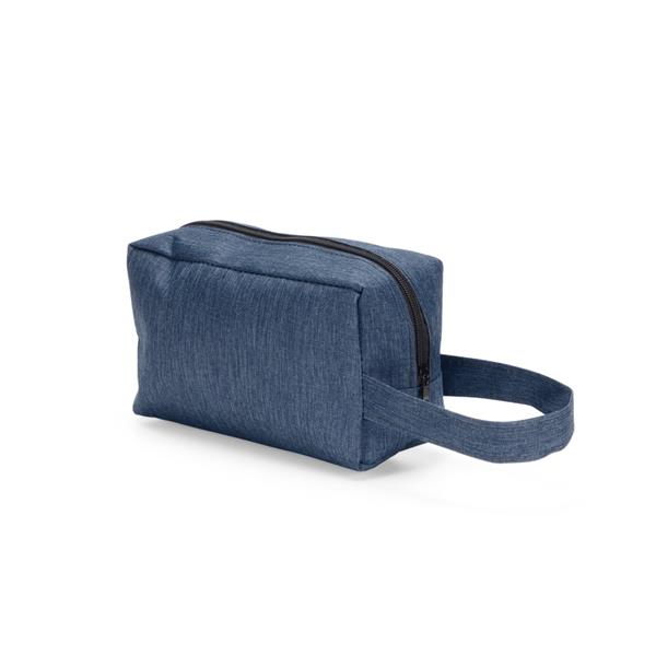 Nécessaire resistente à água feita em poliéster com mescla de PVC. Conta com fechamento em zíper e alça de mão localizada na lateral. Altura : 10,5 cm Largura : 21 cm Profundidade : 9 cm Peso aproximado (g): 78