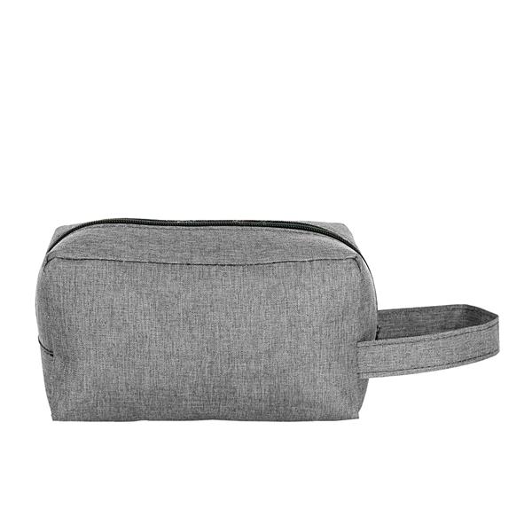Nécessaire resistente à água feita em poliéster com mescla de PVC. Conta com fechamento em zíper e alça de mão localizada na lateral.