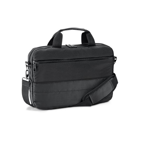 Pasta para notebook. 840D jacquard e 300D. Compartimento com divisória almofadada para notebook até 13.3''. Interior forrado e almofadado. 2 bolsos frontais. Alça de ombro ajustável, com reforço almofadado. Alça para transporte em trolley. 360 x 260 x 50 mm