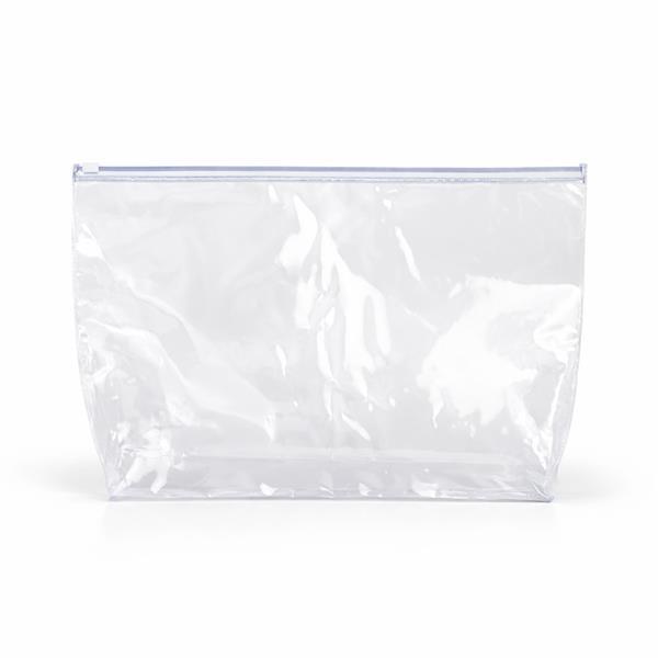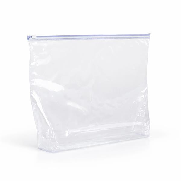 Pasta confeccionada em PVC cristal transparente com fechamento tipo zip zap deslizante.