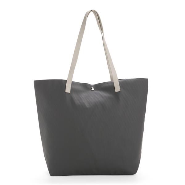 Sacola confeccionada em couro sintético à base de PVC com par de alças de costura externa e botões magnéticos metálicos para fechamento. Possui revestimento interno em poliéster e bolso compacto com fechamento em zíper. Altura : 34 cm Largura : 44 cm Profundidade : 14 cm Peso aproximado (g): 259