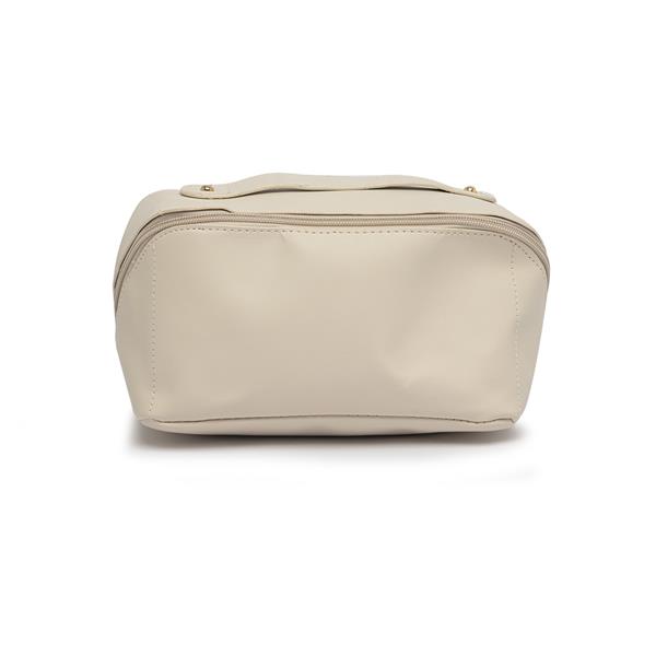 Nécessaire com zíper e couro sintético. Possui abertura larga, 3 bolsos, 3 compartimentos para organização dos itens e alça superior. Altura : 14,5 cm Largura : 22 cm Profundidade : 13,5 cm Peso aproximado (g): 176
