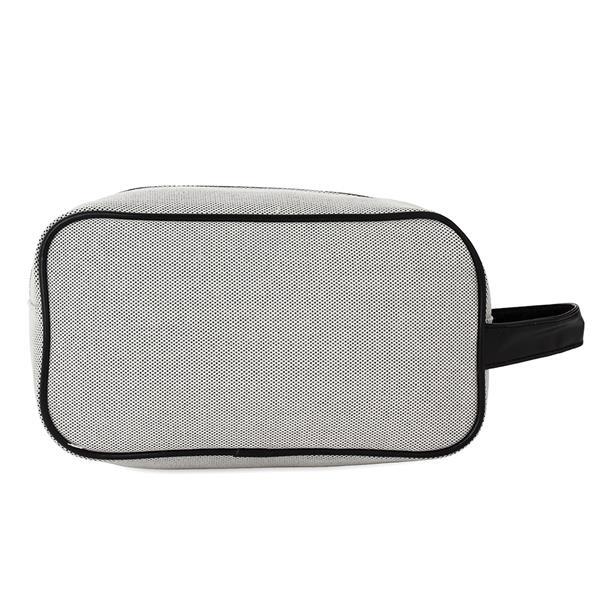 Nécessaire confeccionada em lona e fechamento em zíper. Possui bolso frontal e compartimento principal com três bolsos internos, além de alça lateral e plaquinha costurada em couro sintético. Altura : 14,5 cm Largura : 25 cm Profundidade : 10 cm Comprimento : Alça 16,5 cm Medidas aproximadas para gravação (CxL): 1,5 cm x 4,5 cm Peso aproximado (g): 147
