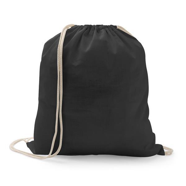 Sacola tipo mochila em 70% algodão reciclado e 30% poliéster reciclado (140 g/m²), com alças de algodão. O tecido é sem tingimento, é utilizado na sua cor original, sem produtos químicos de tingimento ou branqueamento, contribuindo para um menor impacto ambiental. 370 x 410 mm