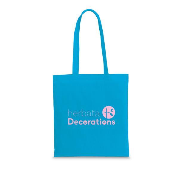Sacola em 70% algodão reciclado e 30% poliéster reciclado (140 g/m²), com alças de 65 cm. O tecido é sem tingimento, é utilizado na sua cor original, sem produtos químicos de tingimento ou branqueamento, contribuindo para um menor impacto ambiental. 380 x 420 mm