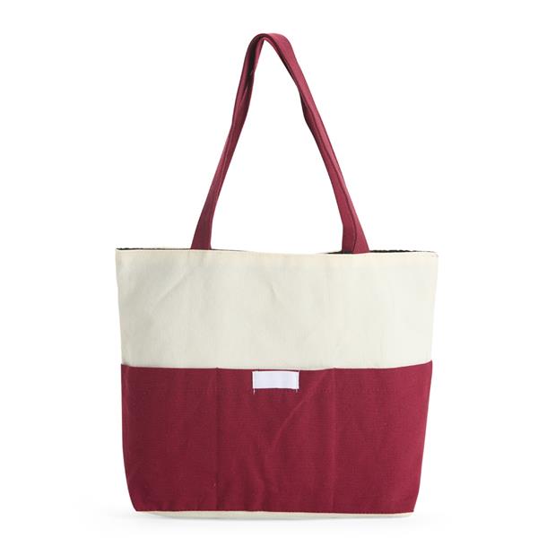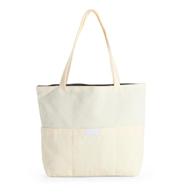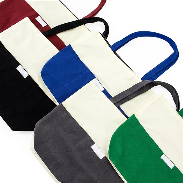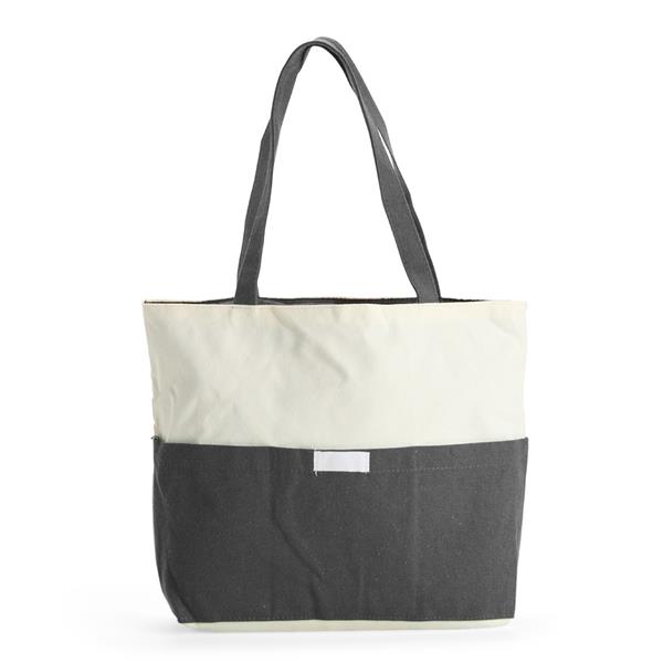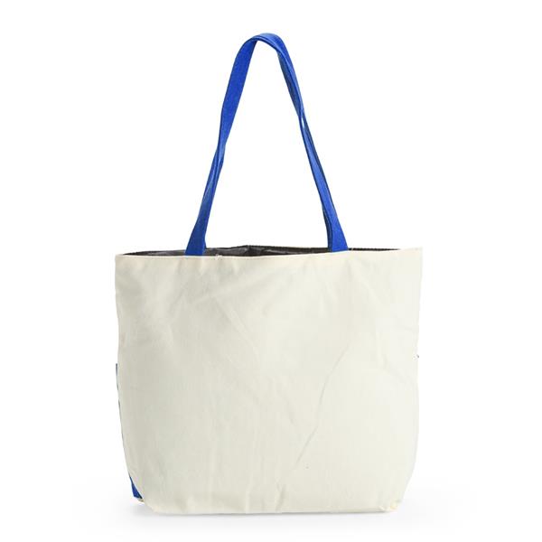 Sacola confeccionada em lona 356g/m² com revestimento interno em poliéster, bolso frontal aberto e duas alças com costura interna. Altura : 30 cm Largura : 39 cm Profundidade : 10cm Peso aproximado (g): 187