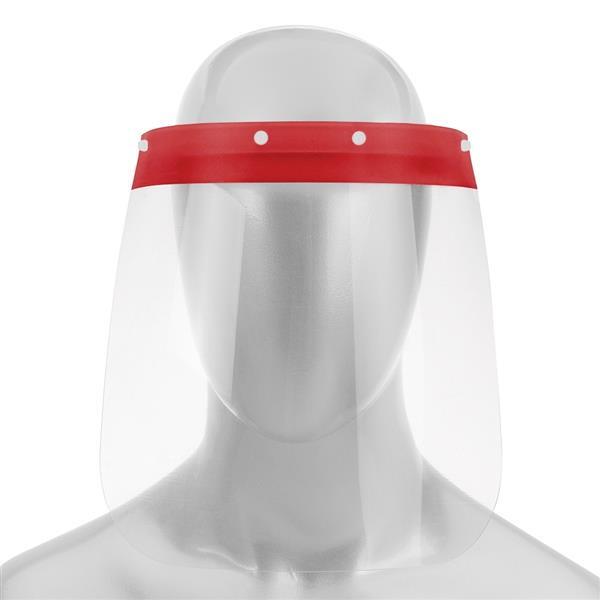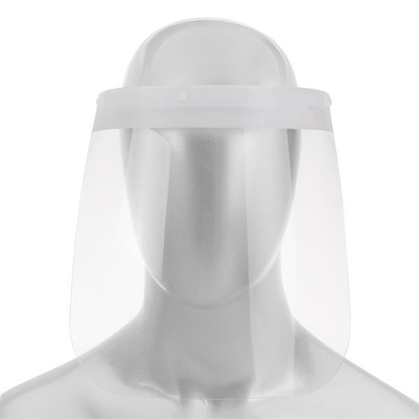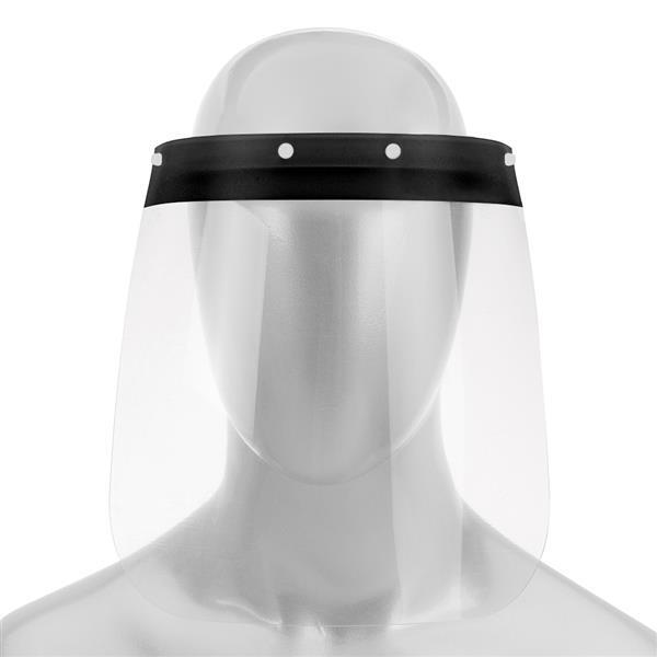 Descrição: Máscara PETG de proteção facial, sua utilização evita o contato com gotículas, salivas e fluídos nasais que possam atingir a face. Contém: visor PETG 100% transparente, suporte com testeira revestida em PVC expandido e elástico regulável de silicone. Para montagem do protetor facial, fixe o elástico nos pinos das extremidades do suporte, posteriormente remova a película protetora do PETG e faça o encaixe nos quatro pinos do suporte.