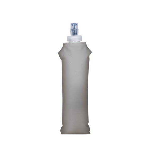 Squeeze dobrável feito em poliuretano termoplástico (TPU), material flexível, resistente à variação de temperaturas e livre de BPA. Possui capacidade para até 500 ml e bico rosqueável em plástico e silicone.