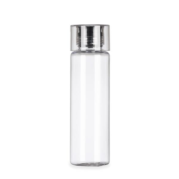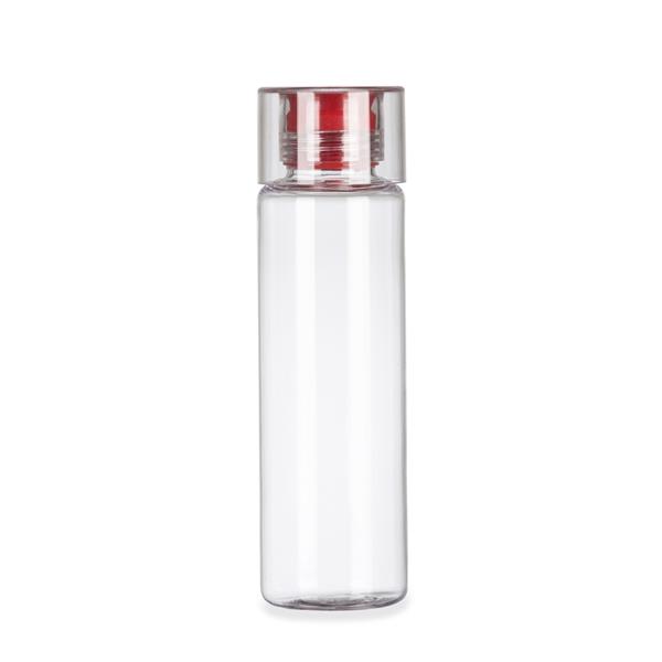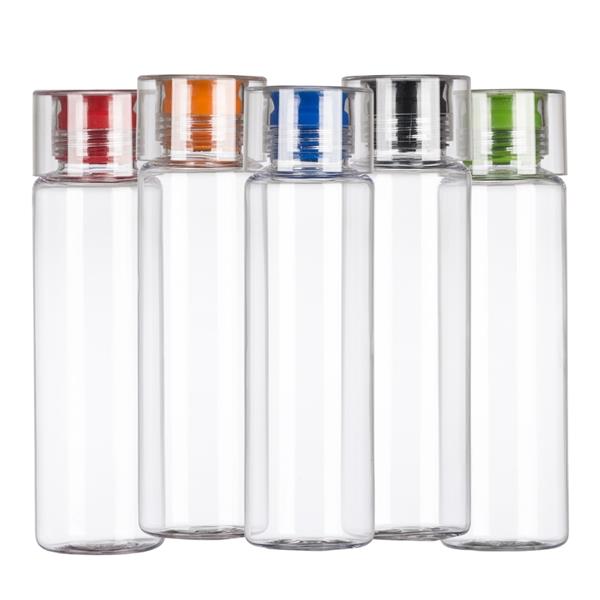 Descrição: Squeeze plástico 600 ml com tampa rosqueável. Material plástico transparente com tampa, possui bico/tampa interna emborrachada colorida. Ambas rosqueáveis.